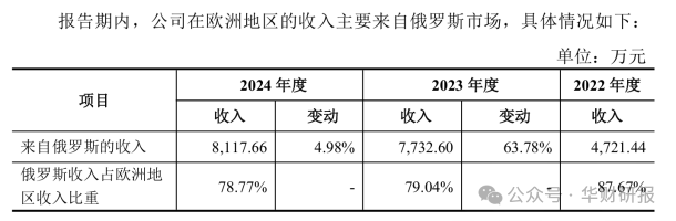 《华财》留意到,2023年德耐尔于俄罗斯市场获得的收入较上一年增加了3011。16万元,同年公司全体境外收入增加了5136。76万元。可见,俄罗斯市场是德耐尔2023年境外收入增加的次要驱动力。