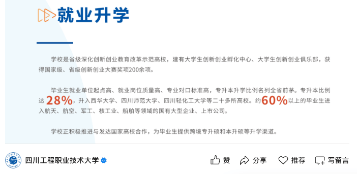第三方统计数据显示学校2024届结业生有56。26%都能进入全国铁十八局,再加长进入铁工程局的同窗,国企就业率会更高。